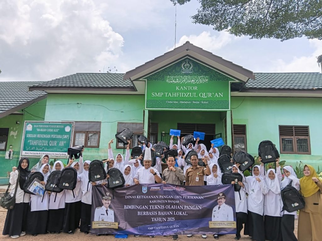 Pada hari Senin, 20 Oktober 2025, SMP Tahfidzul Qur’an menjadi tuan rumah kegiatan Bimbingan Teknis (Bimtek) Olahan Pangan Berbasis Bahan Lokal yang diselenggarakan oleh Dinas Ketahanan Pangan dan Perikanan Kabupaten Banjar. Kegiatan ini diikuti oleh seluruh santriwati kelas 7 yang dengan antusias mengikuti setiap sesi pelatihan.