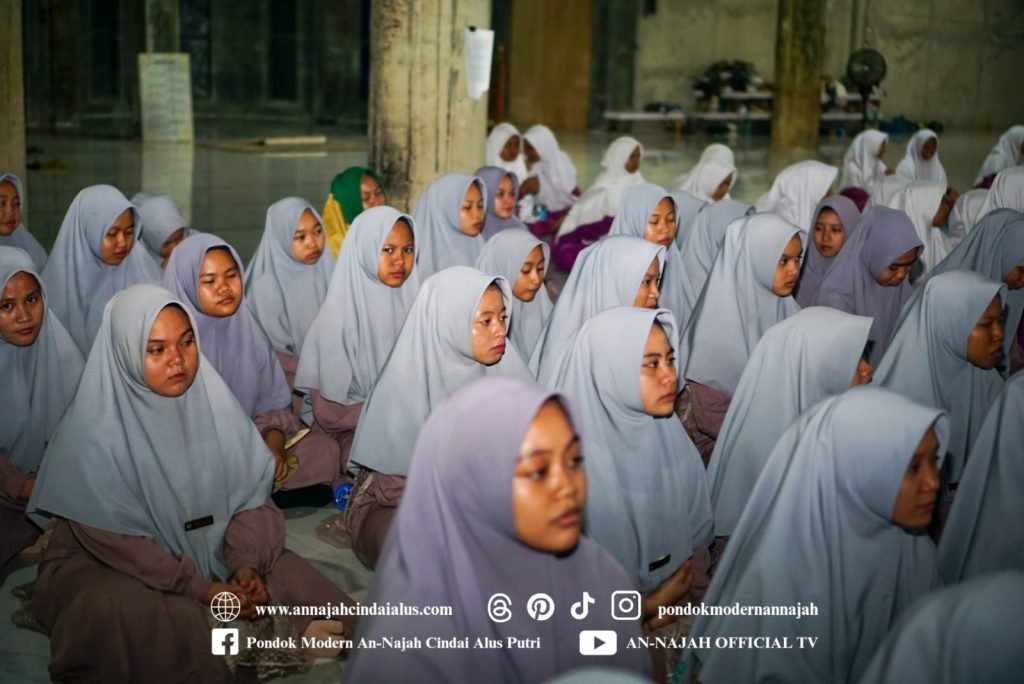 Suasana malam di Masjid An-Najah terasa syahdu dan penuh rasa haru. Santriwati mengikuti kegiatan dengan tertib dan penuh perhatian, menjadikan momen tersebut sebagai penguat semangat sebelum kembali ke rumah.